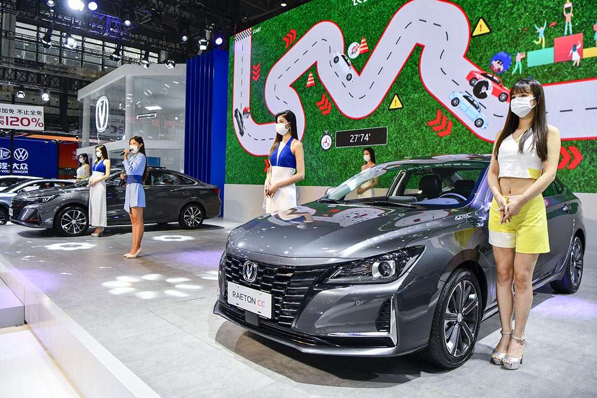6月2日,2022第19届海南国际汽车展览会暨第7届海南国际新能源·智能汽车展览会在海南海口开展。本届车展展出面积超6万平方米,共吸引超过100个汽车品牌参展。图为车模助阵海南国际汽车展览会。(图片来源:中新社)