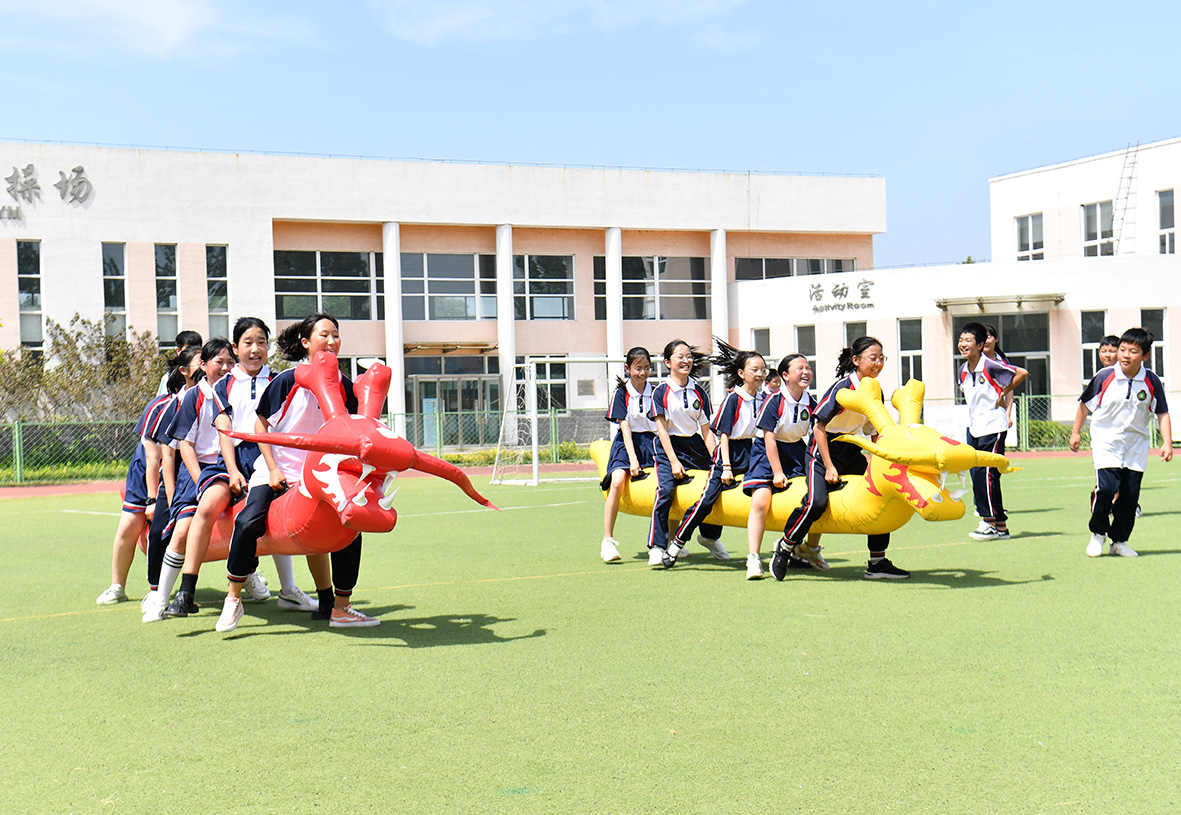 6月2日,雄安多所学校举办丰富多彩的端午节活动,让学生进一步了解端午节的相关知识,领略传统文化的魅力。图为雄安新区安新县端村学校举行陆地龙舟比赛。(图片来源:中新社)