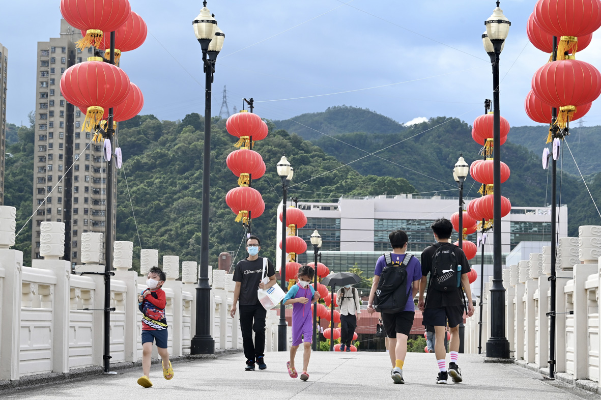 6月29日,随着香港回归祖国25周年纪念日临近,香港沙田街头庆回归气氛浓。图为沙田区庆回归装饰。(图片来源:中新社)