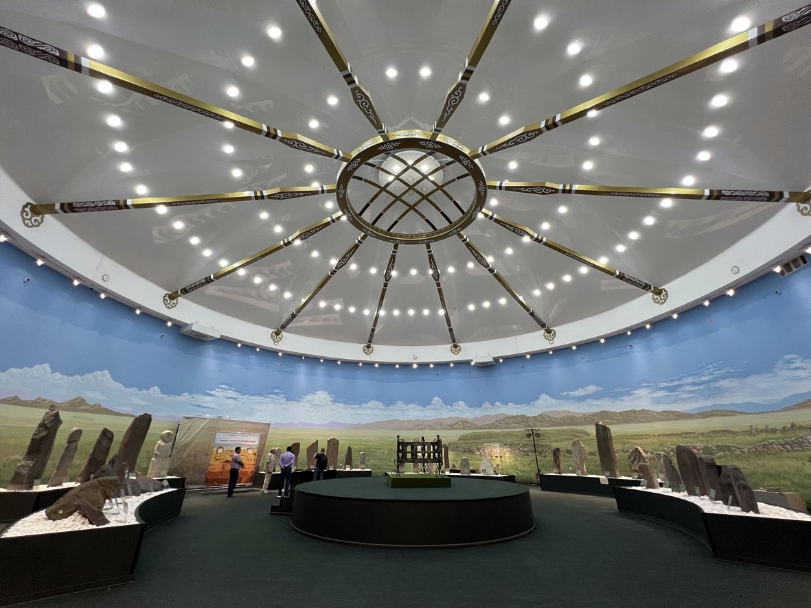 当地时间7月15日,游客参观图瓦共和国首府克孜勒市的民族博物馆,该博物馆天花板设计成蒙古包的形式,被称为“世界上最大的蒙古包”。图瓦共和国位于俄罗斯西伯利亚南部,面积约17万平方公里,80%的土地为山脉高原,湖泊河流众多,有着丰富的自然资源和独特的自然风光,是名副其实的旅游胜地。大叶尼塞河和小叶尼塞河在此交汇,被称为叶尼塞河的起源地。(图片来源:中新社)