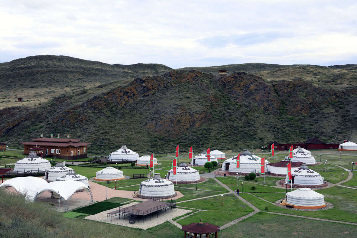 当地时间7月15日,图瓦共和国克孜勒区的一个休闲度假村,蒙古包按照星辰位置布置。大部分图瓦人仍保留着游牧民族的传统生活习俗。(图片来源:中新社)