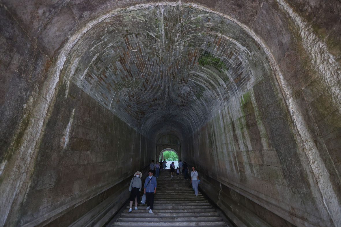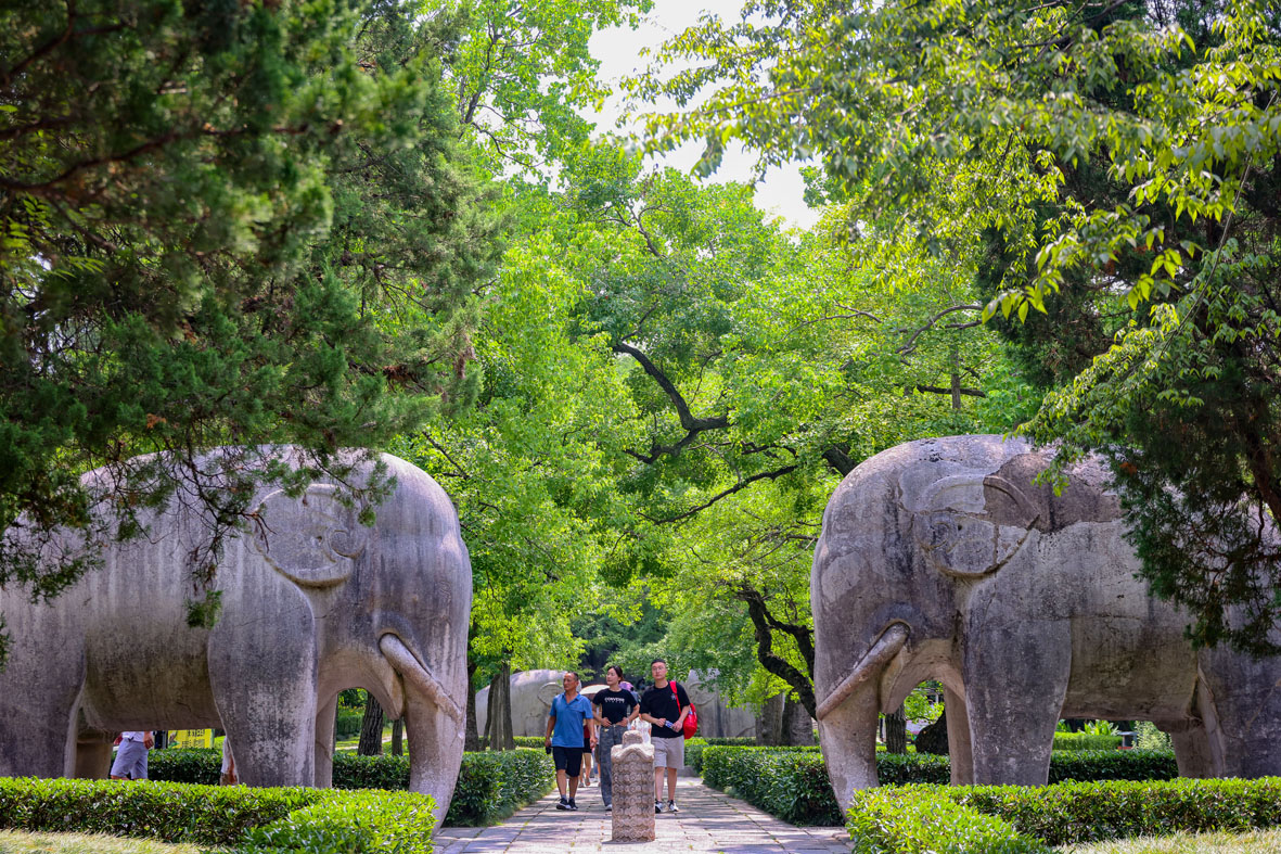 8月2日,江苏南京,游客暑期参观世界文化遗产南京明孝陵,高温下“感知历史”。距今已有600多年历史的明孝陵位于南京东郊钟山南麓,是明朝开国皇帝朱元璋与皇后马氏的陵寝。2003年,明孝陵作为明清皇家陵寝扩展项目列入《世界遗产名录》。 (图片来源:中新社)