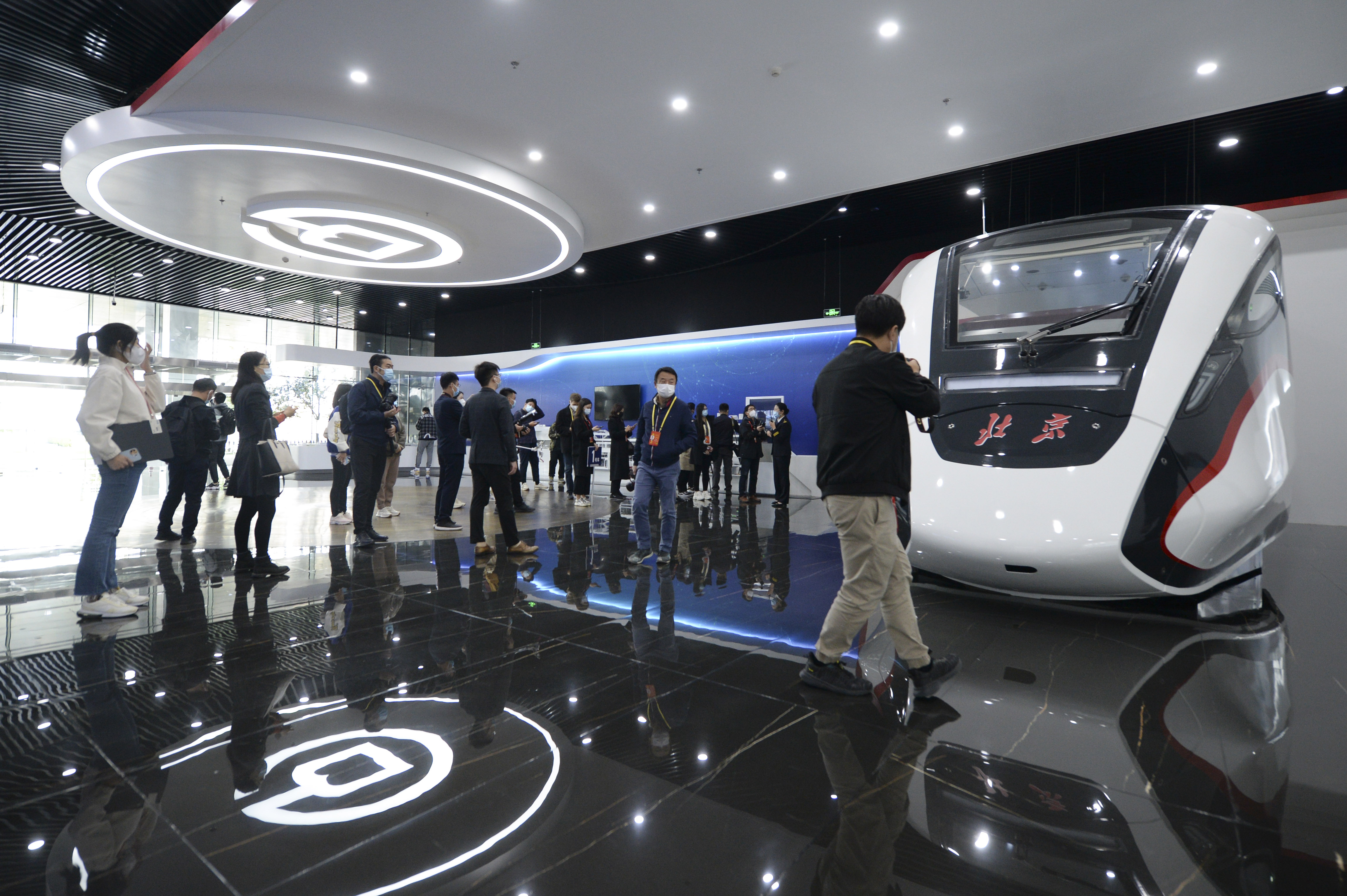 10月17日,媒体记者在北京市轨道交通指挥中心参观采访。当日,中共二十大新闻中心为境内外记者组织北京市轨道交通指挥中心参观采访活动。探访北京地铁“大脑”高效秘诀,体验北京城市轨道交通的现代化管理,了解北京轨道交通整体情况和建设历程、轨道交通指挥中心工作场景。(图片来源:中新社)
