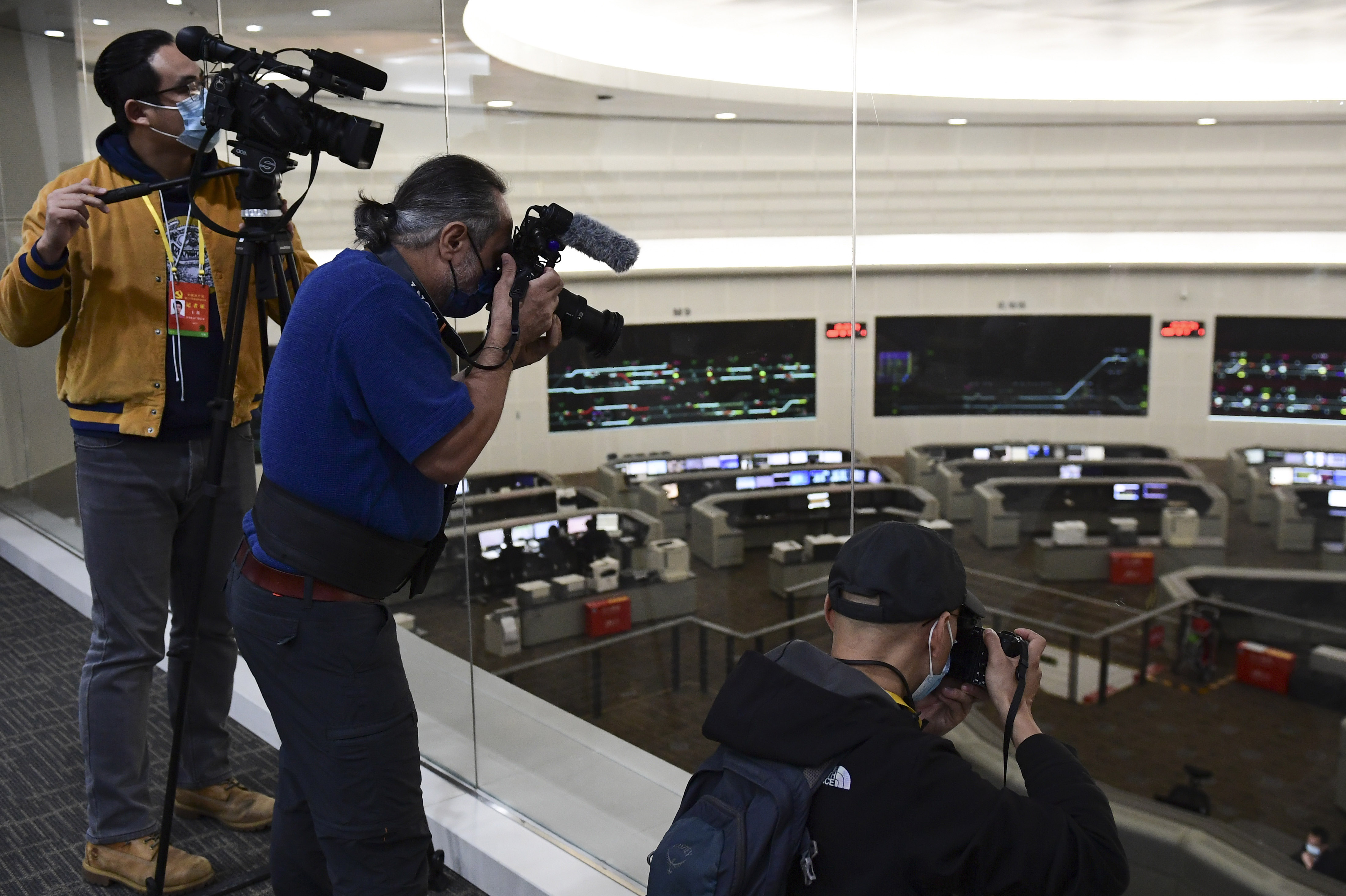10月17日,媒体记者在北京市轨道交通指挥中心拍摄轨道交通指挥大厅。(图片来源:中新社)