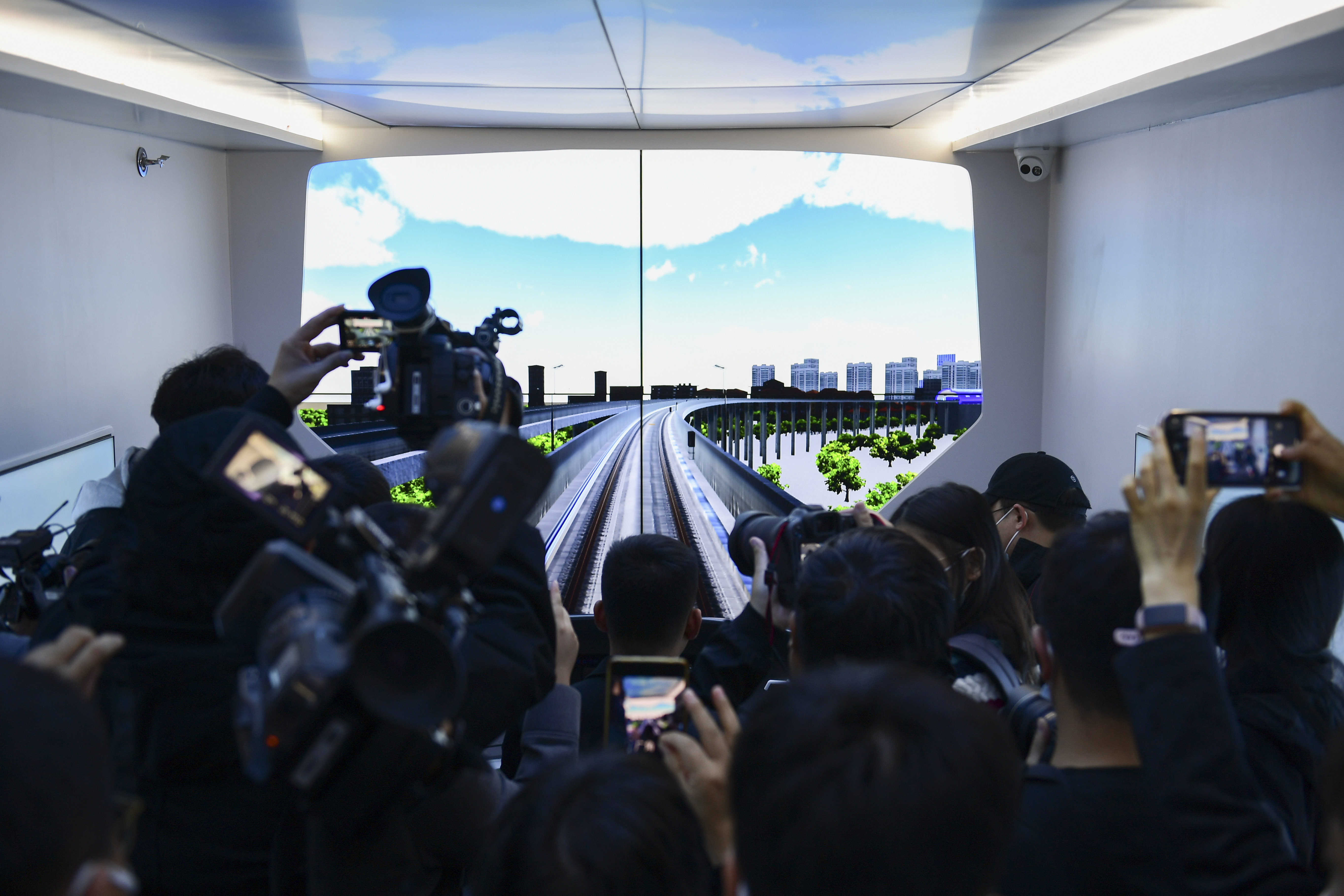 10月17日,媒体记者在北京市轨道交通指挥中心参观采访体验模拟地铁驾驶。(图片来源:中新社)