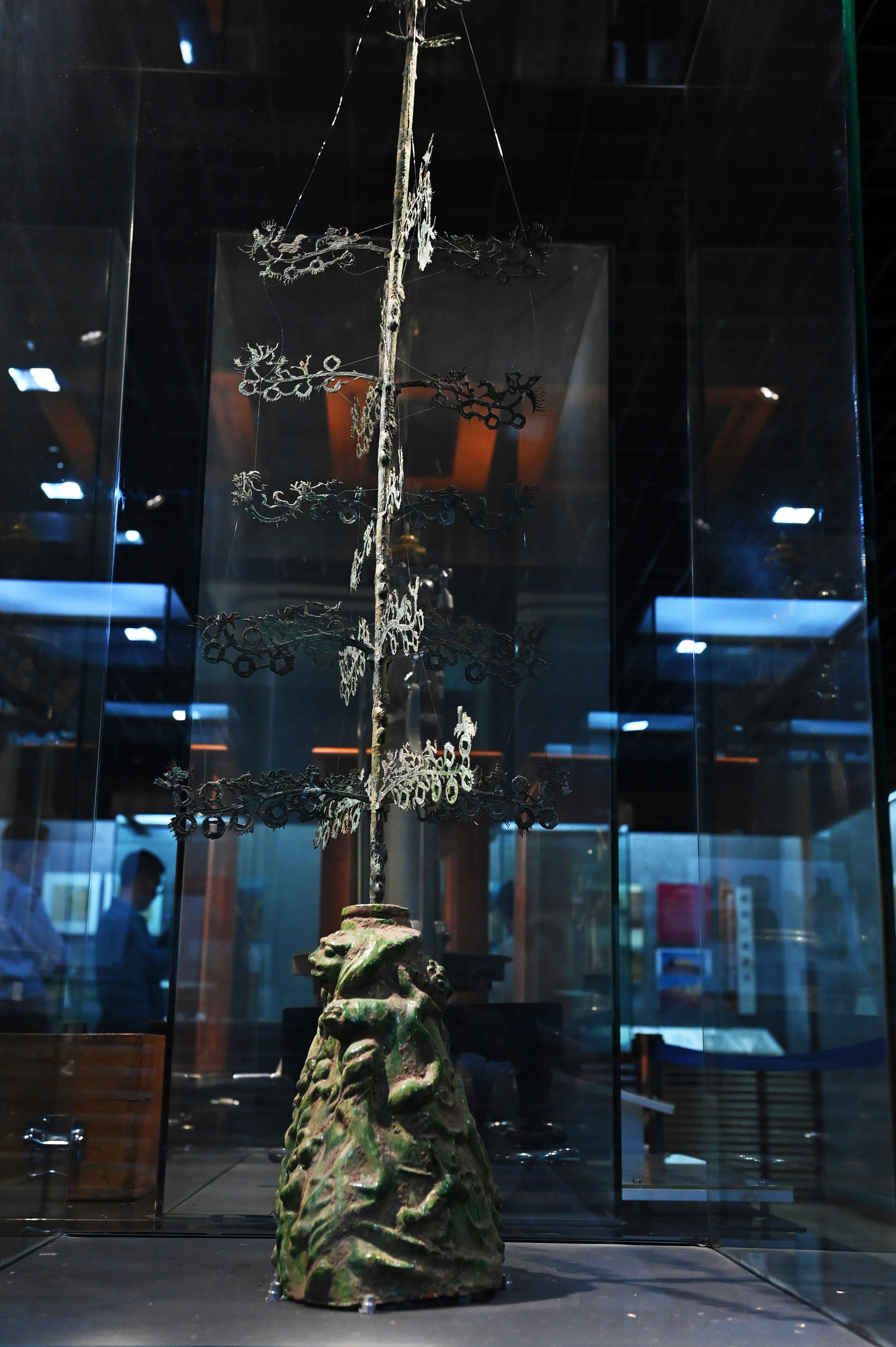 10月20日,在位于兰州市的甘肃钱币博物馆内,镇馆之宝青铜钱树吸引参观者驻足。(图片来源:中新社)