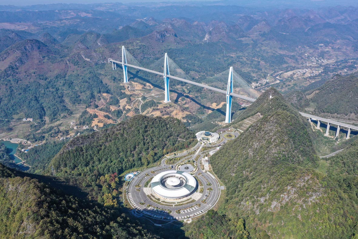 11月2日,航拍贵州平塘“天空之桥”服务区与平塘特大桥。平(塘)罗(甸)高速公路“天空之桥”服务区位于贵州省黔南布依族苗族自治州平塘县境内。服务区依托紧邻世界最高混凝土高塔桥“平塘特大桥”优势,在保证交通运输基础服务功能的前提下,不断优化旅游环境设施,除了普通服务区的功能外,还设置了观景台、桥梁科普馆、悬崖酒店等场所,使其成为旅游目的地和“网红打卡地”。(无人机照片) (图片来源:中新社)