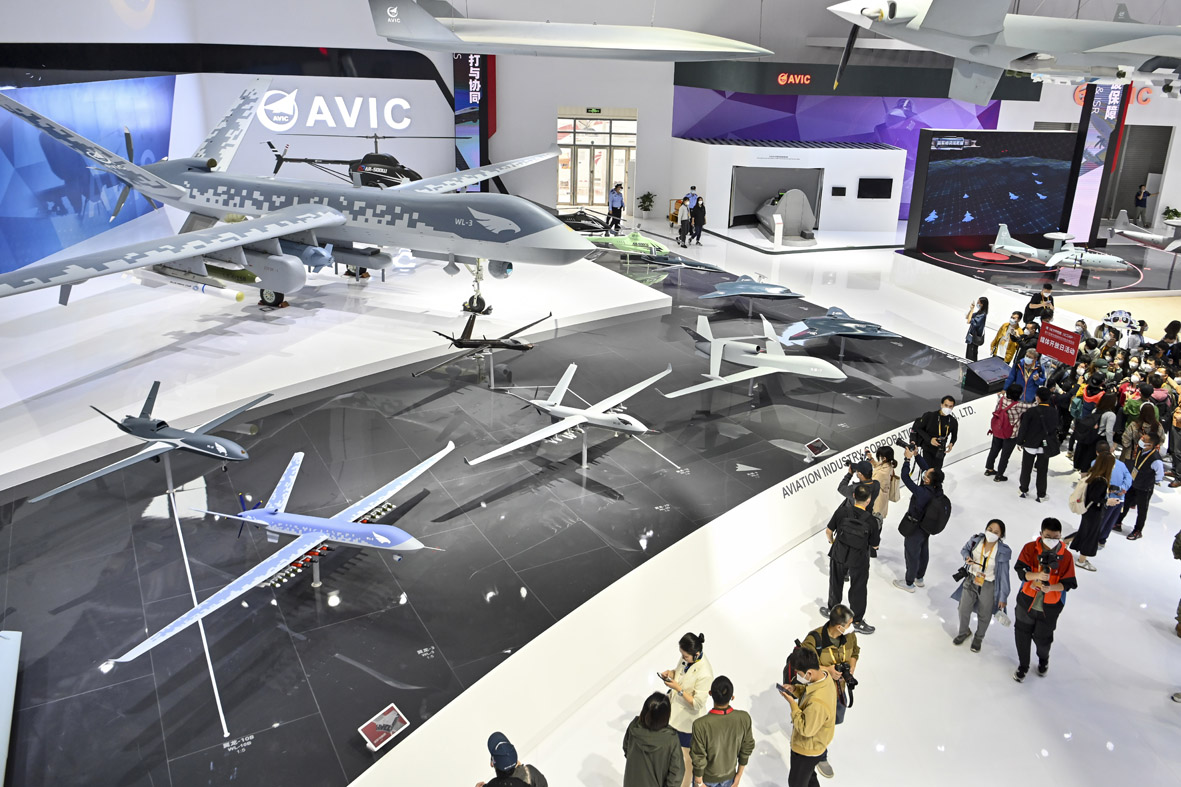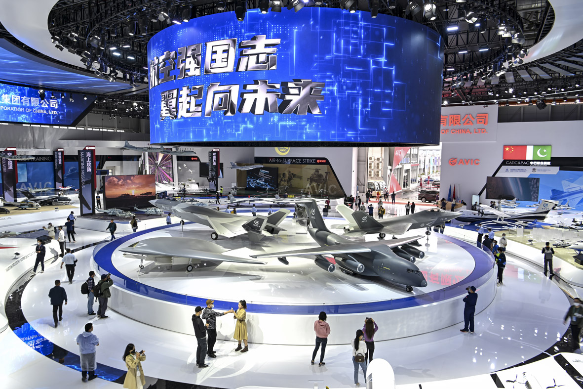 图为第十四届中国航展上的中国航空工业集团有限公司展位。 (图片来源:中新社)