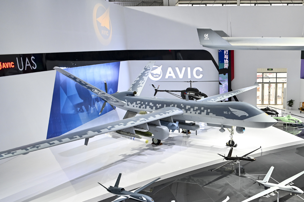 11月6日,广东省珠海市,翼龙-3(WL-3)无人机在第十四届中国航展上展出,这也是该无人机首次公开亮相。(图片来源:中新社)