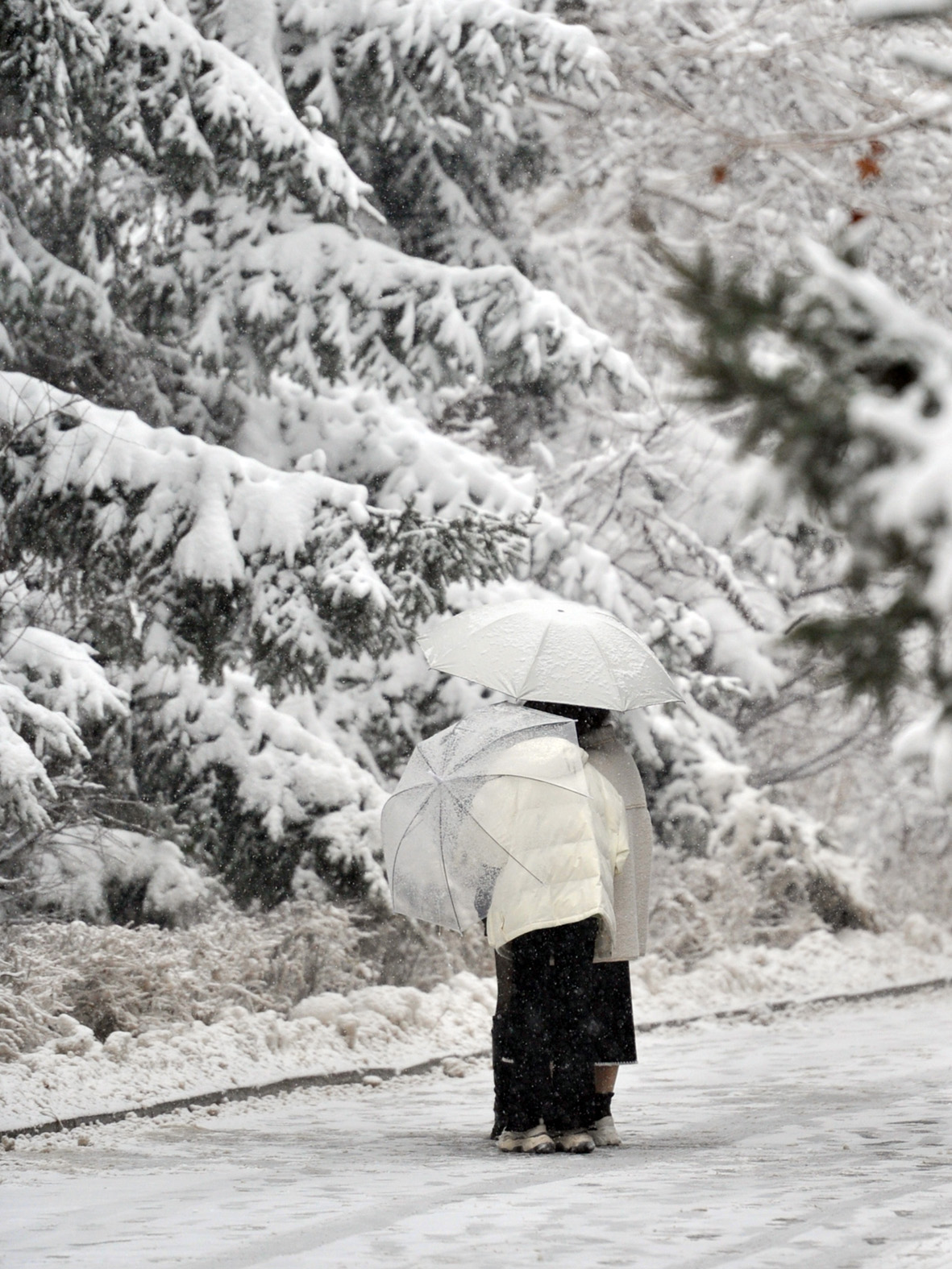 11月12日,吉林长春,雪中的南湖公园。当日,长春市迎来降雪,城区银装素裹。图片来源:中新社