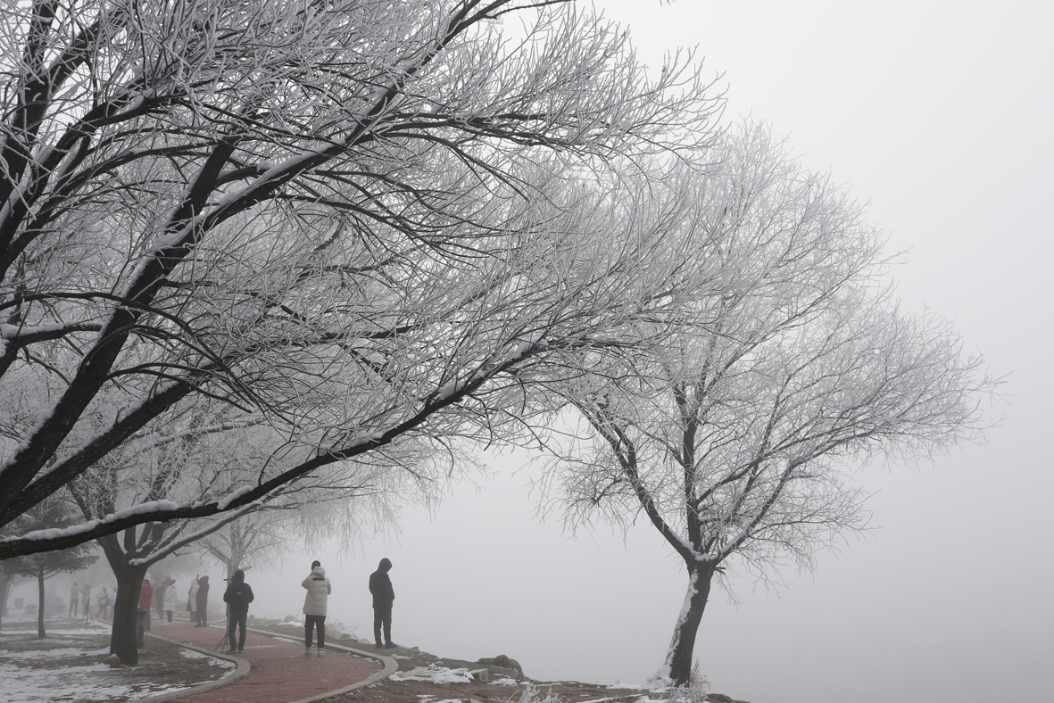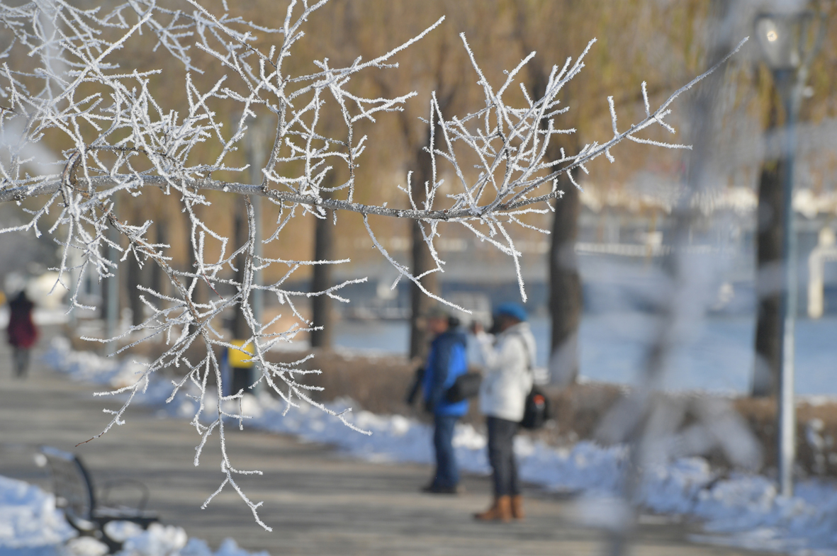 11月15日,吉林省长春市,雾凇美景引市民驻足欣赏。当天,吉林省多地出现雾凇美景。图片来源:中新社