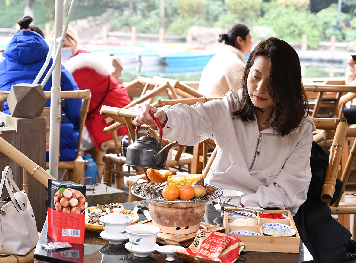 12月7日,四川成都,在茶馆里煮茶的市民。近期,“围炉煮茶”这一新兴吃茶方式逐渐风靡,其充满仪式感和互动感的体验过程,尤其受到年轻一代青睐,成为年轻人社交的新宠。据了解,目前成都有超过20000家各式茶馆,其中提供“围炉煮茶”服务的约有上千家。 (图片来源:中新社)