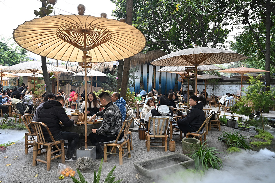 12月7日,四川成都,一茶馆内坐满了“围炉煮茶”的民众。(图片来源:中新社)