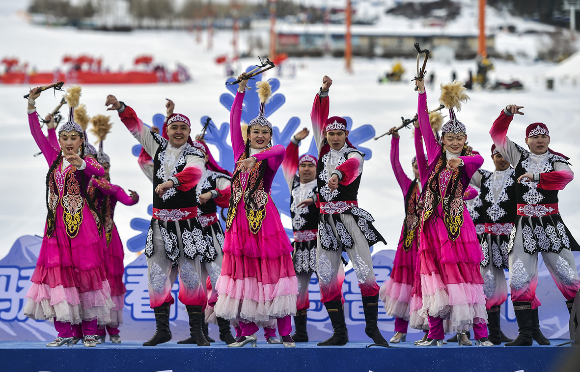 12月14日,第二十届乌鲁木齐丝绸之路冰雪风情节在新疆乌鲁木齐市南山景区开幕,正式拉开了该市2022-2023冬季旅游活动的帷幕。(图片来源:中新社)