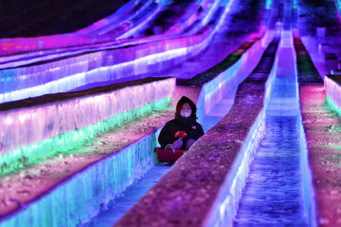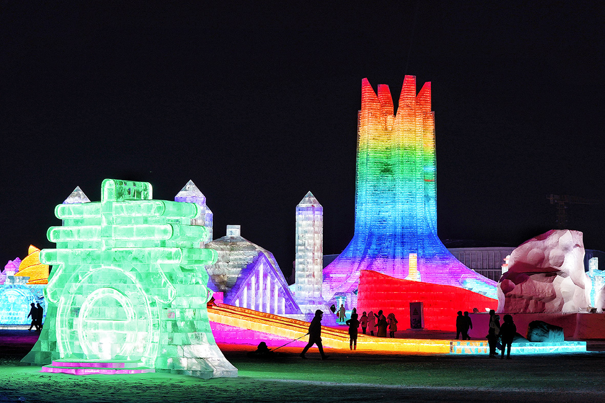 12月17日,第24届哈尔滨冰雪大世界迎客。据了解,今年冰雪大世界以“冰雪之都,创意无限”为主题,在81万平方米的园区里,用15万立方米的冰和雪,建成上百个冰雪景观,运用冰雪语言展示哈尔滨的城市特质、资源优势、历史底蕴与激情活力。(图片来源:中新社)