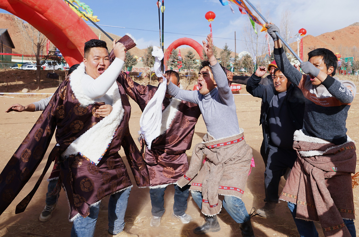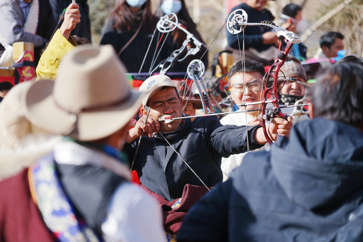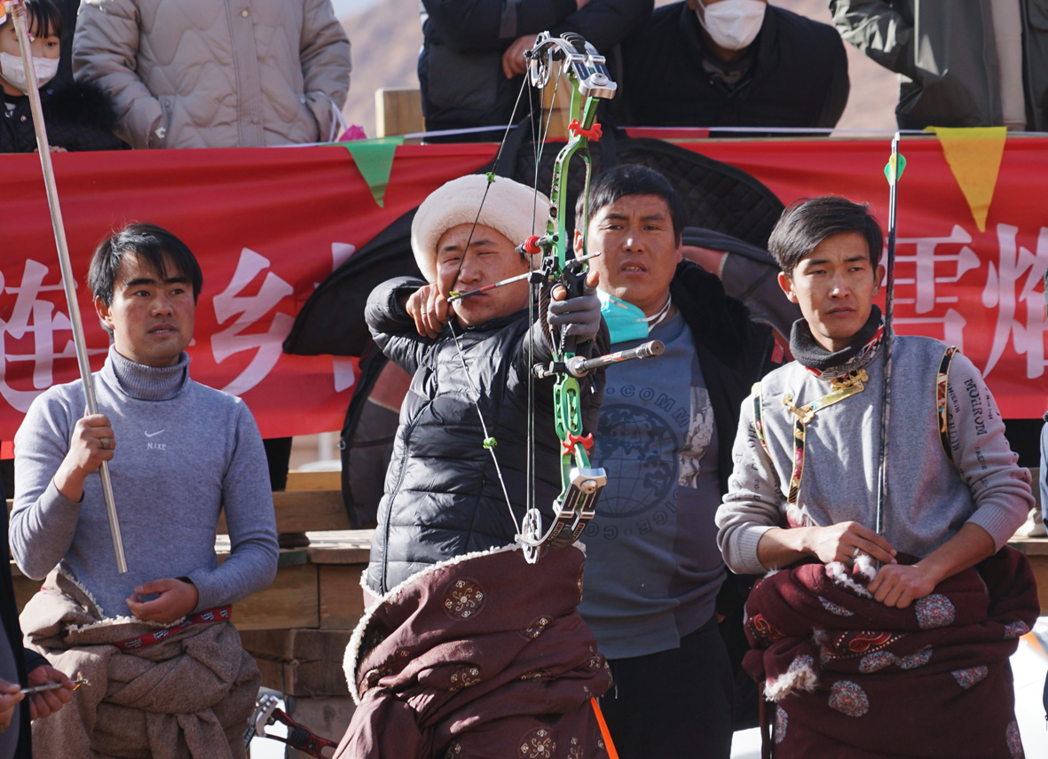 1月10日,农历兔年临近,青海省海北藏族自治州祁连县举行民族传统射箭比赛,民众比拼射箭技艺,共迎中国农历兔年。 (图片来源:中新社)