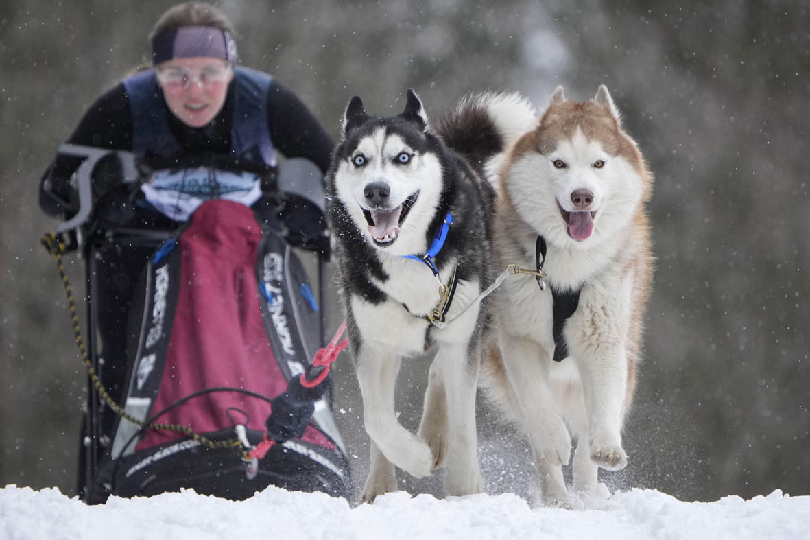 2月19日,俄罗斯圣彼得堡,一名女子带着她的狗参加狗拉雪橇比赛。(图片来源:CFP)