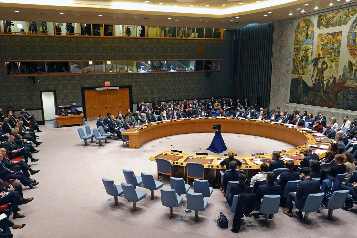 当地时间2月24日,联合国安理会在纽约联合国总部举行乌克兰问题公开会。(图片来源:中新社)