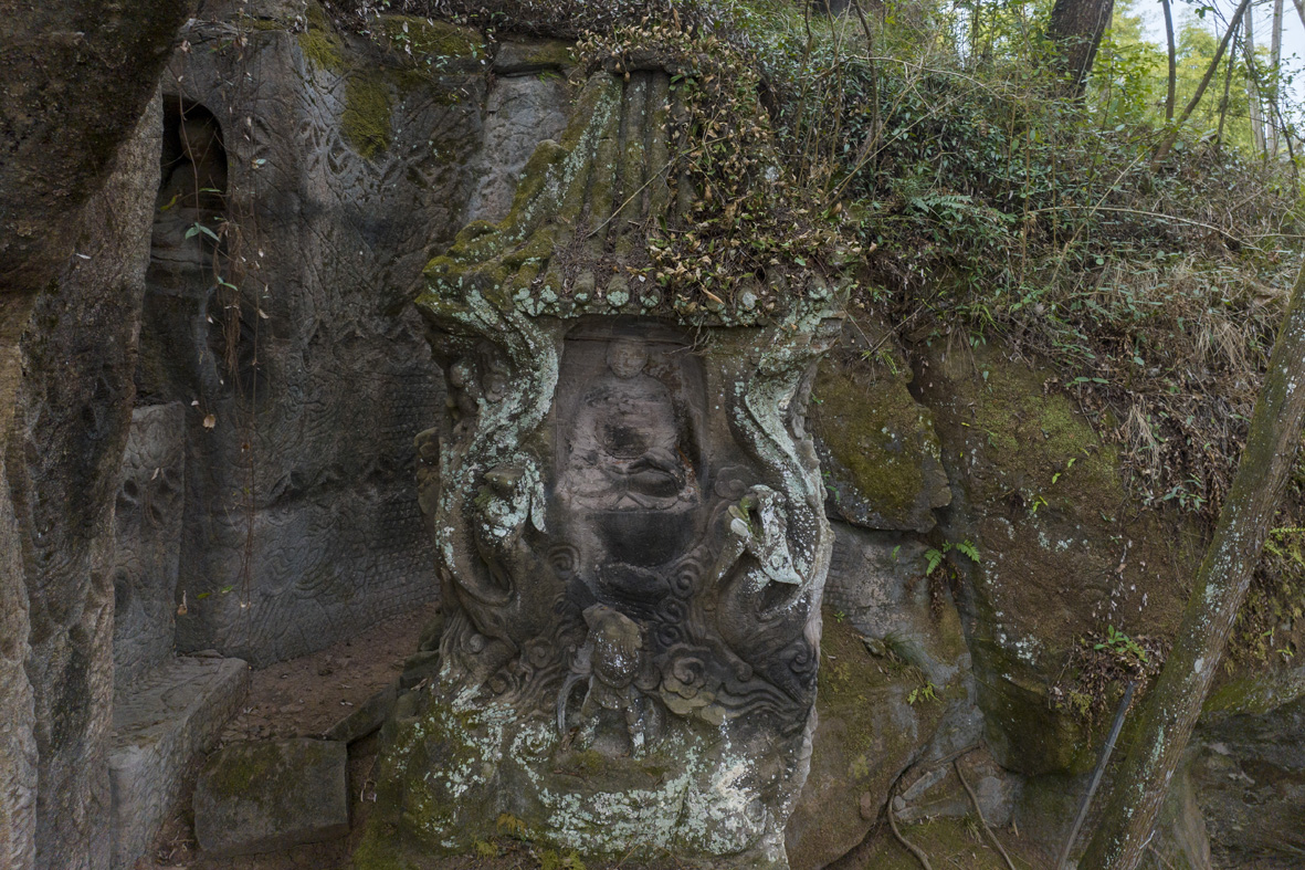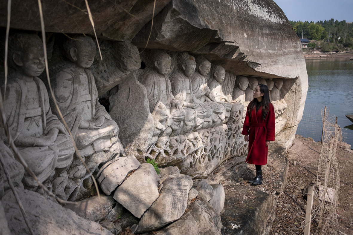 图为露出水面的摩崖石窟造像。(图片来源:中新社)
