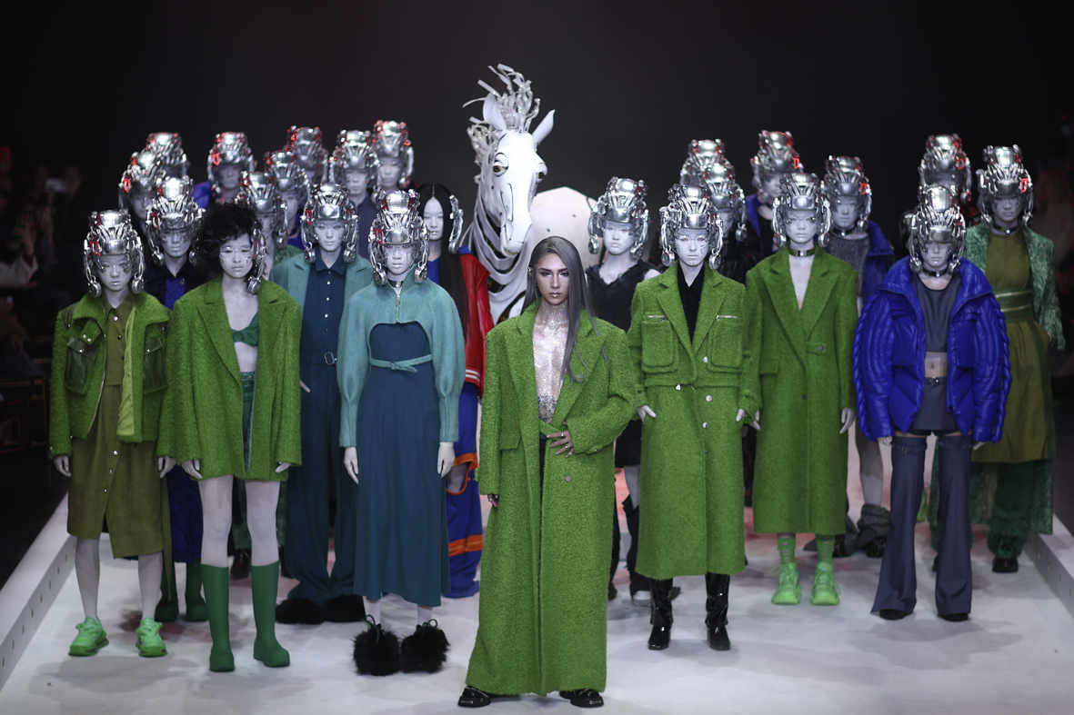 3月26日,北京,设计师丁洁携“视界.边界”系列时装亮相中国国际时装周(2023秋冬系列)(图片来源:中新社)