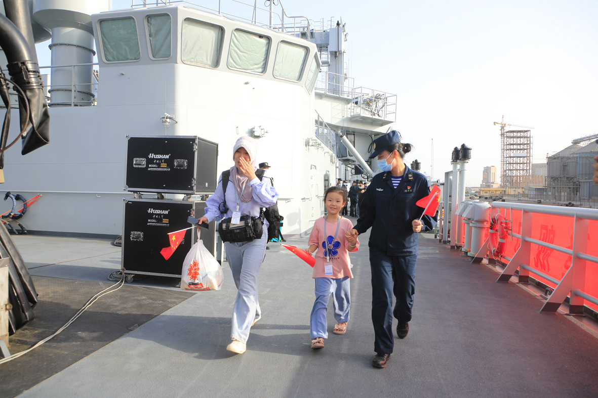 根据统一部署,当地时间4月26日,中国海军南宁舰、微山湖舰紧急赴苏丹苏丹港,执行接运撤离中国在苏丹人员任务。图为微山湖舰正在靠泊苏丹港。(图片来源:中新社)