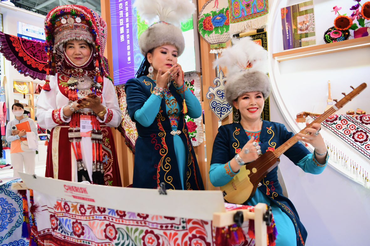 6月7日,第十九届中国(深圳)国际文化产业博览交易会在广东深圳国际会展中心开幕。本届文博会以线下为主、线上线下融合的方式举办,线下共设6个展馆。图为柯尔克孜族民族乐器“库姆孜”。(图片来源:中新社)
