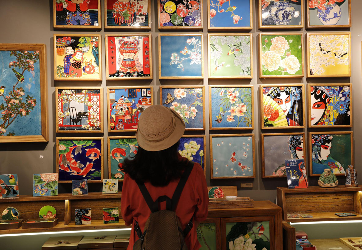 6月7日,第十九届中国(深圳)国际文化产业博览交易会上非遗产品石板画吸引客商。(图片来源:中新社)
