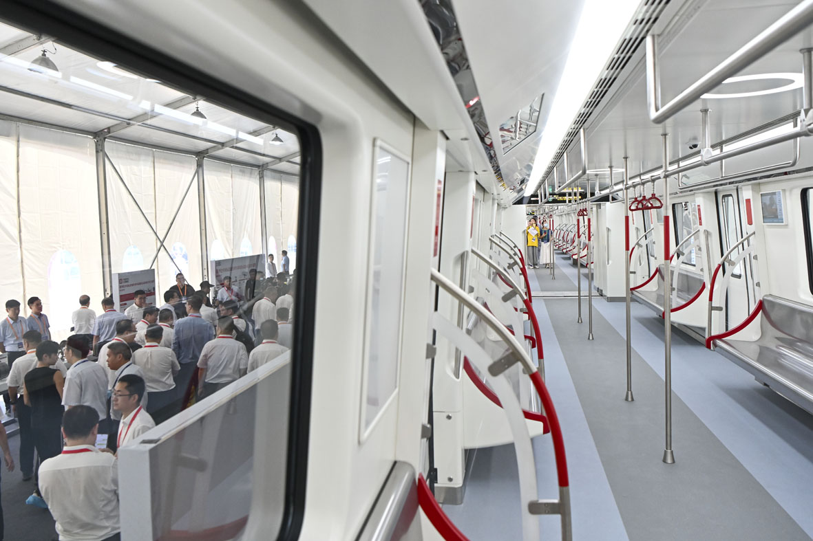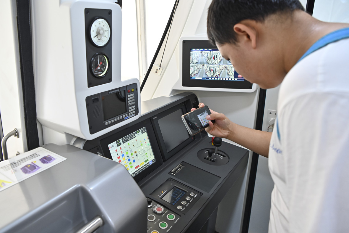 图为嘉宾参观时速80公里A型车驾驶室。(图片来源:中新社)