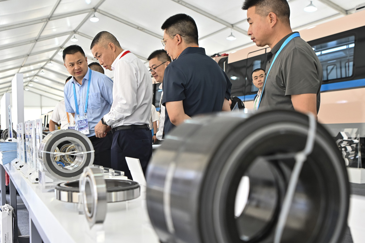 图为嘉宾参观时速80公里A型车的相关部件。(图片来源:中新社)