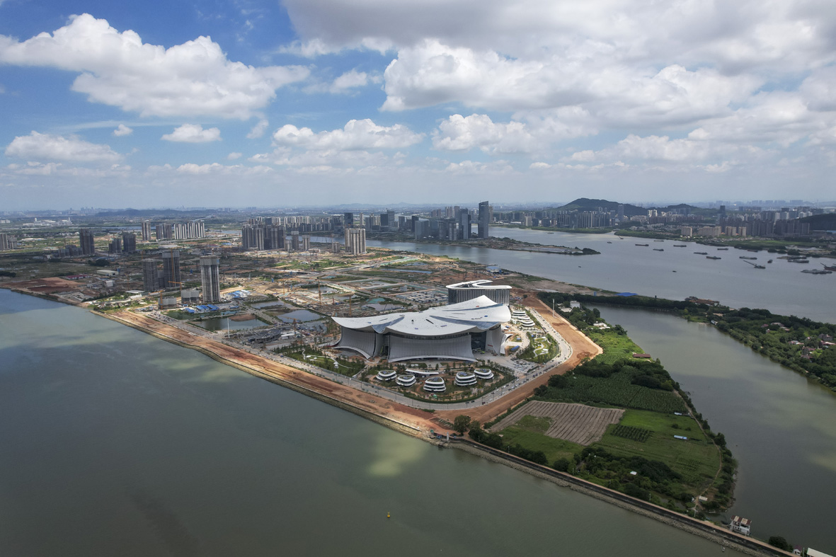 7月11日,航拍南沙国际金融论坛(IFF)永久会址项目。(图片来源:中新社)