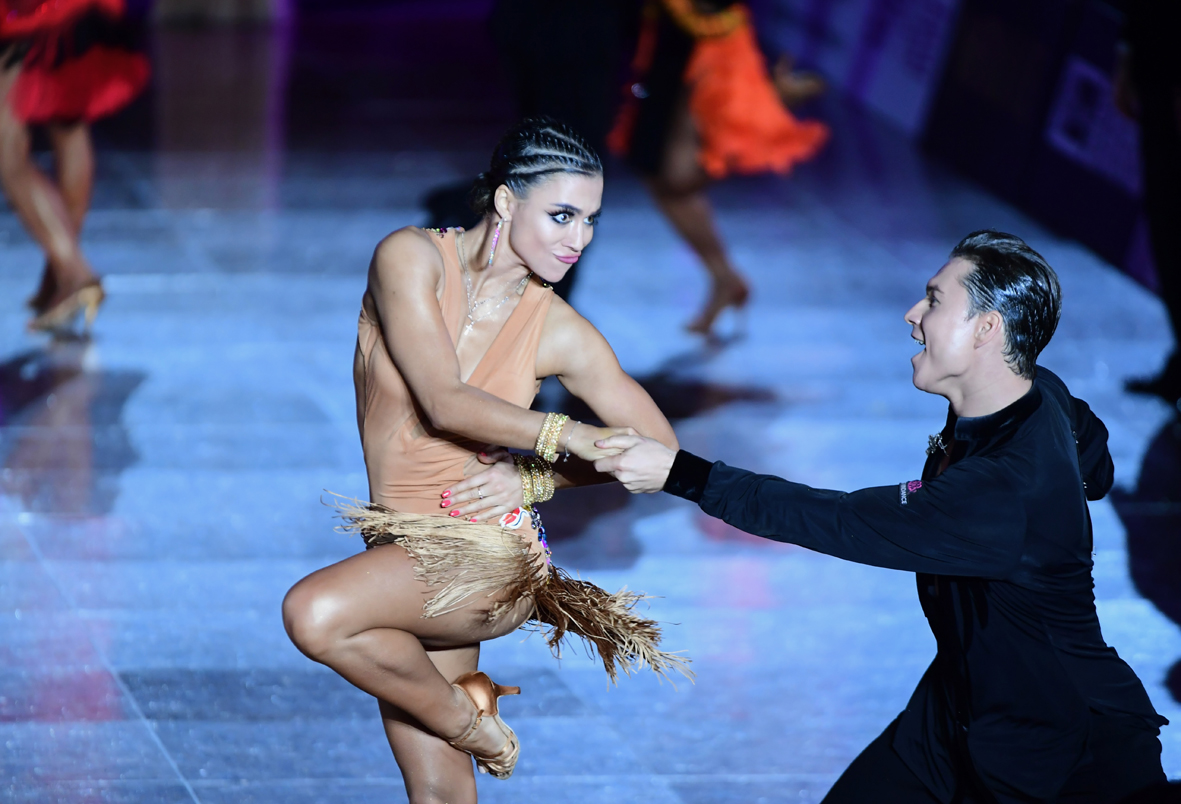 图为选手在拉丁舞比赛中。(图片来源:中新社)