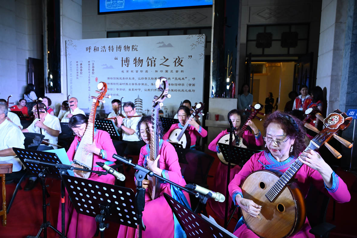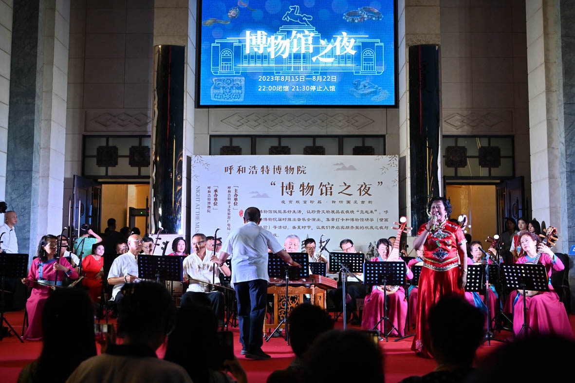8月15日,呼和浩特博物馆“博物馆之夜”音乐会首场演出在内蒙古呼和浩特市博物馆门前奏响,吸引民众驻足欣赏。(图片来源:中新社)