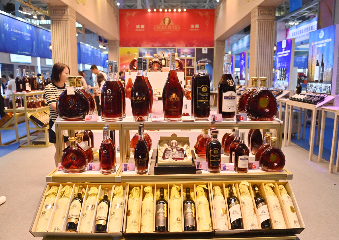 图为法国红酒展位吸引参观者。(图片来源:中新社)
