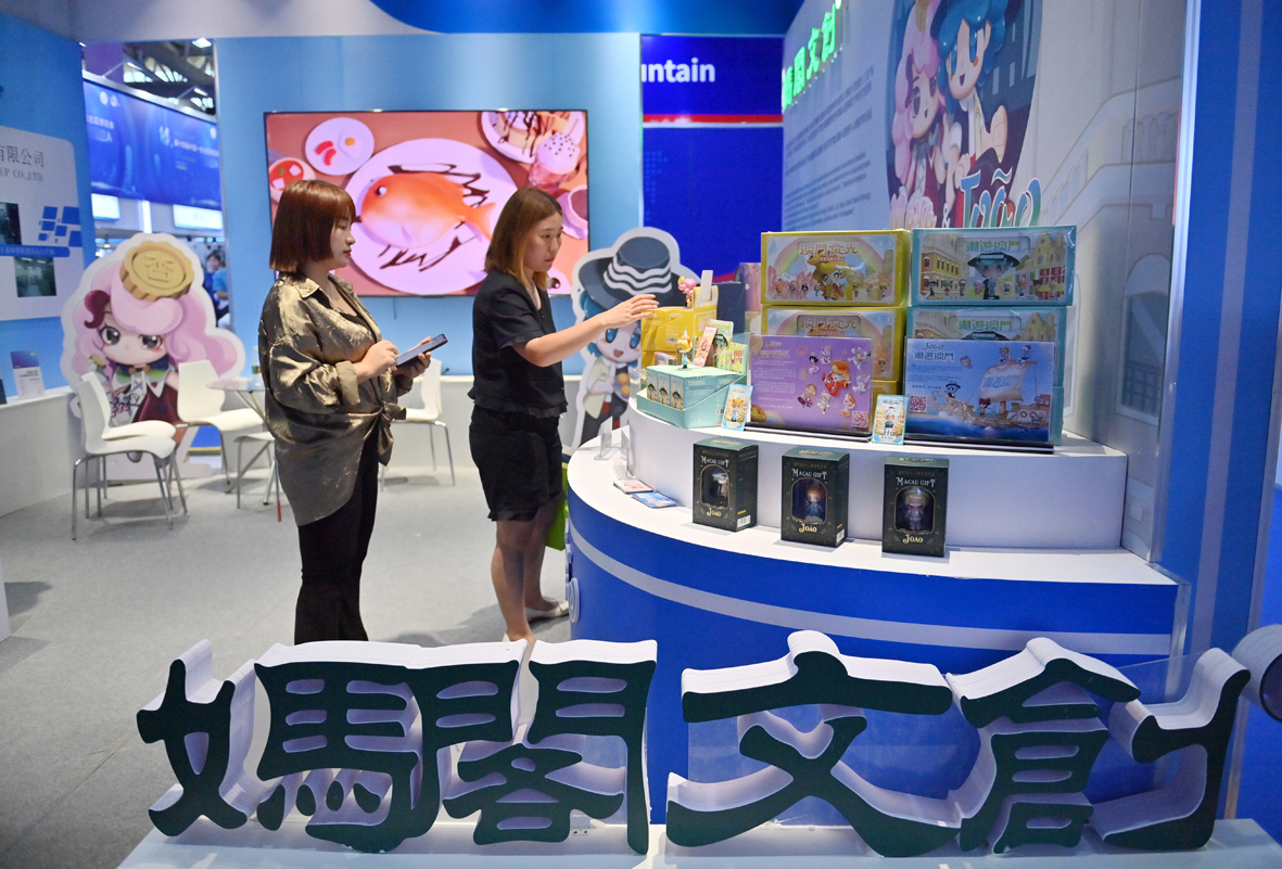 图为参观者在澳门展位购买文创产品。(图片来源:中新社)