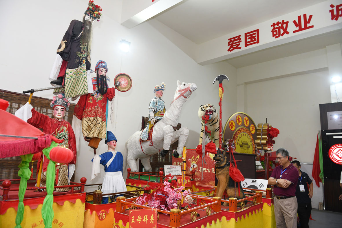 图为华媒代表参观“长乐抬阁故事会”展厅。(图片来源:中新社)
