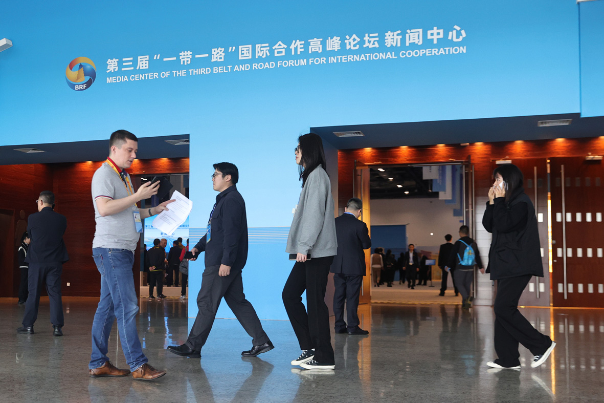 10月16日,第三届“一带一路”国际合作高峰论坛新闻中心在北京国家会议中心正式启用。(图片来源:中新社)