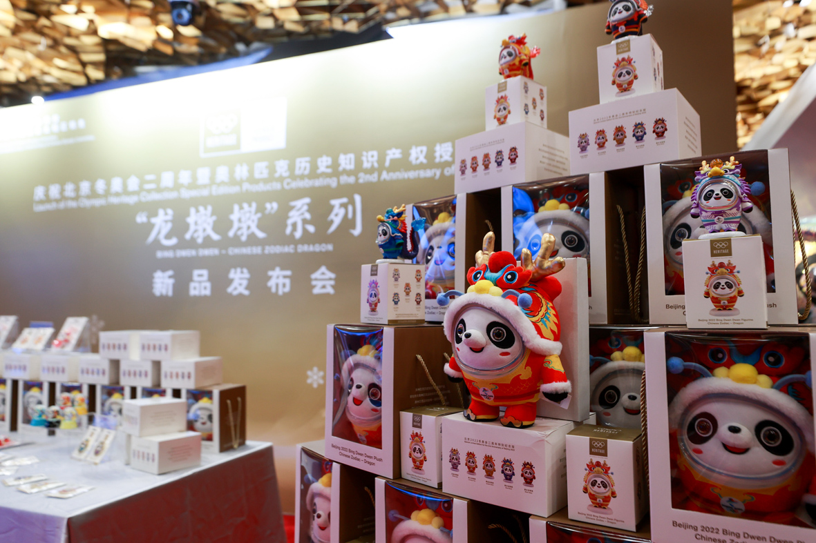 图为发布会现场的各类“龙墩墩”产品。(图片来源:中新社)