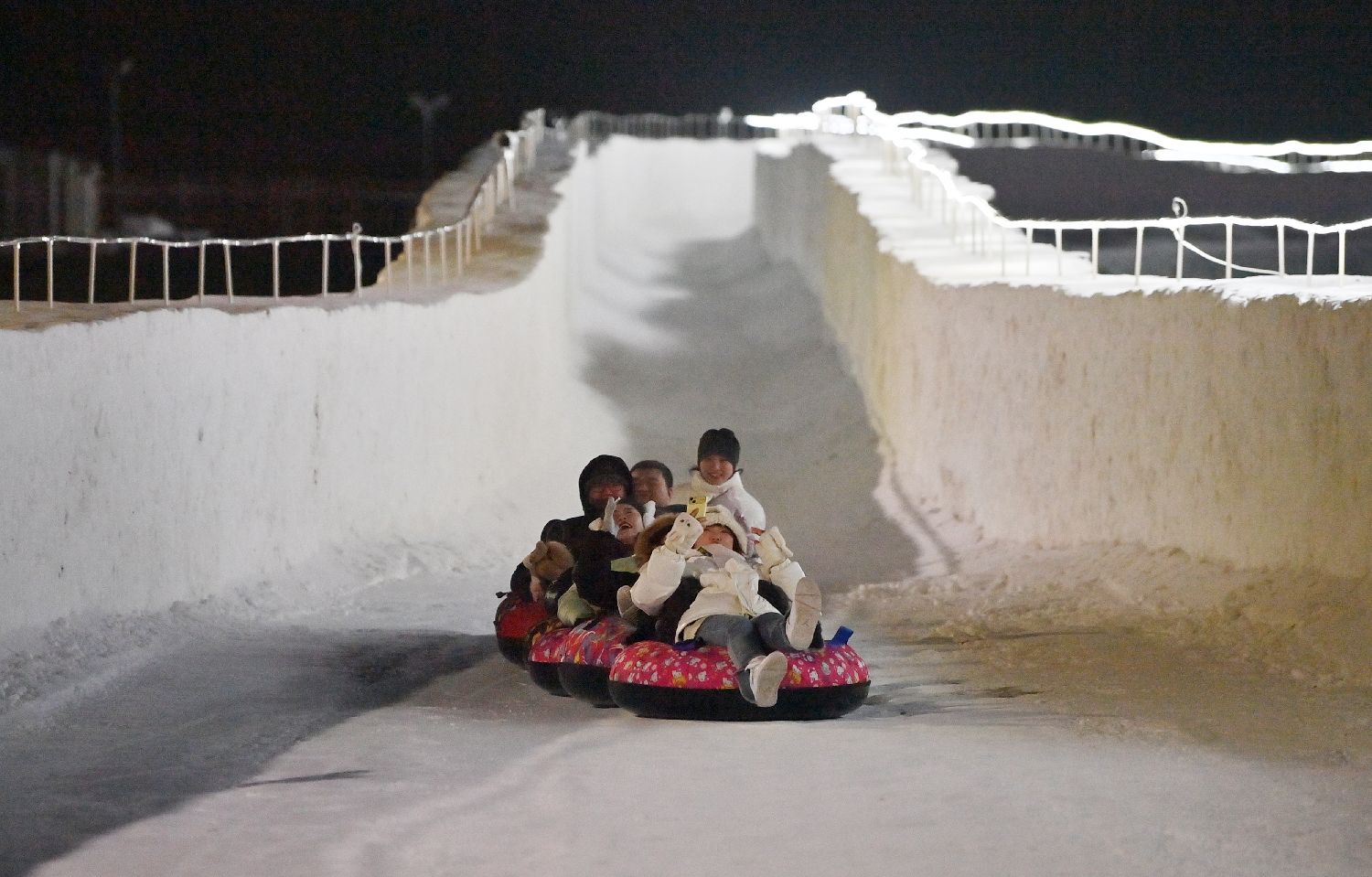 图为游客在玩雪漂流。(图片来源:中新社)