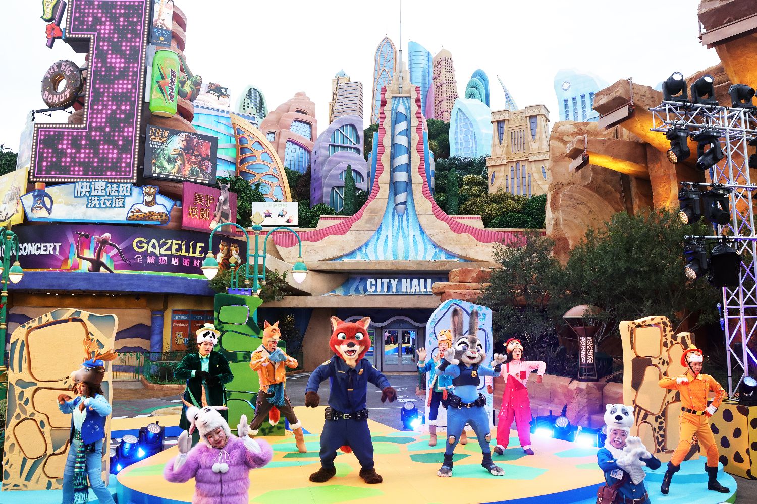 12月19日,全球首个“疯狂动物城”园区在上海迪士尼乐园揭幕。“狐狸尼克”和“兔子警官朱迪”以及动物朋友们齐聚,庆祝正式开“城”。“疯狂动物城”园区以华特迪士尼公司动画电影《疯狂动物城》中的角色和故事为创意灵感,将于12月20日正式对公众开放。(图片来源:中新社)
