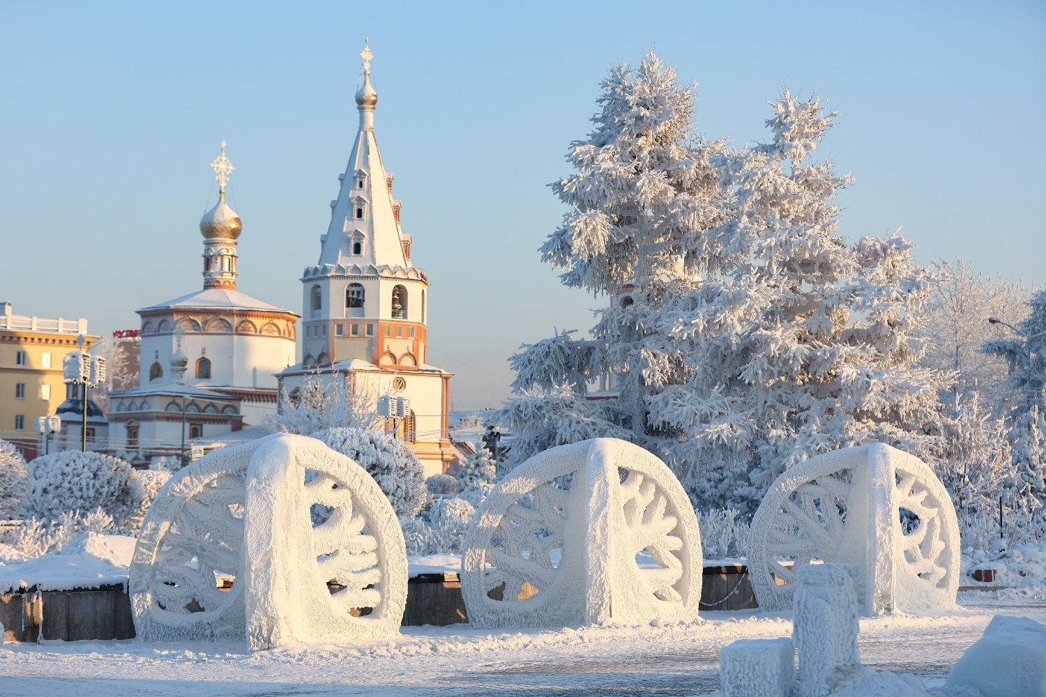当地时间2023年12月22日,俄罗斯伊尔库茨克,主显大教堂的景色。(图片来源:CFP)