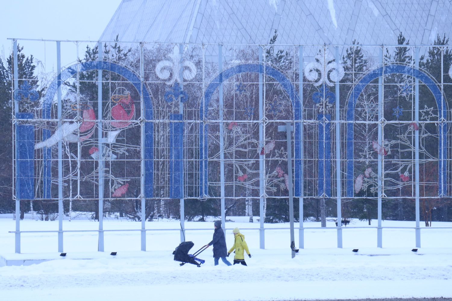 当地时间1月10日,哈萨克斯坦首都阿斯塔纳迎暴风雪天气。图为“全副武装”的民众在雪天里溜娃。(图片来源:中新社)