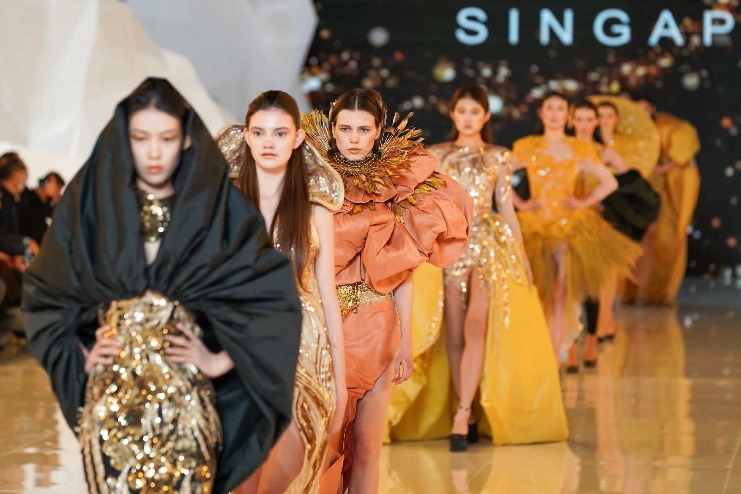 图为新加坡设计师Frederick Lee携其同名品牌进行的作品发布秀。(图片来源:中新社)