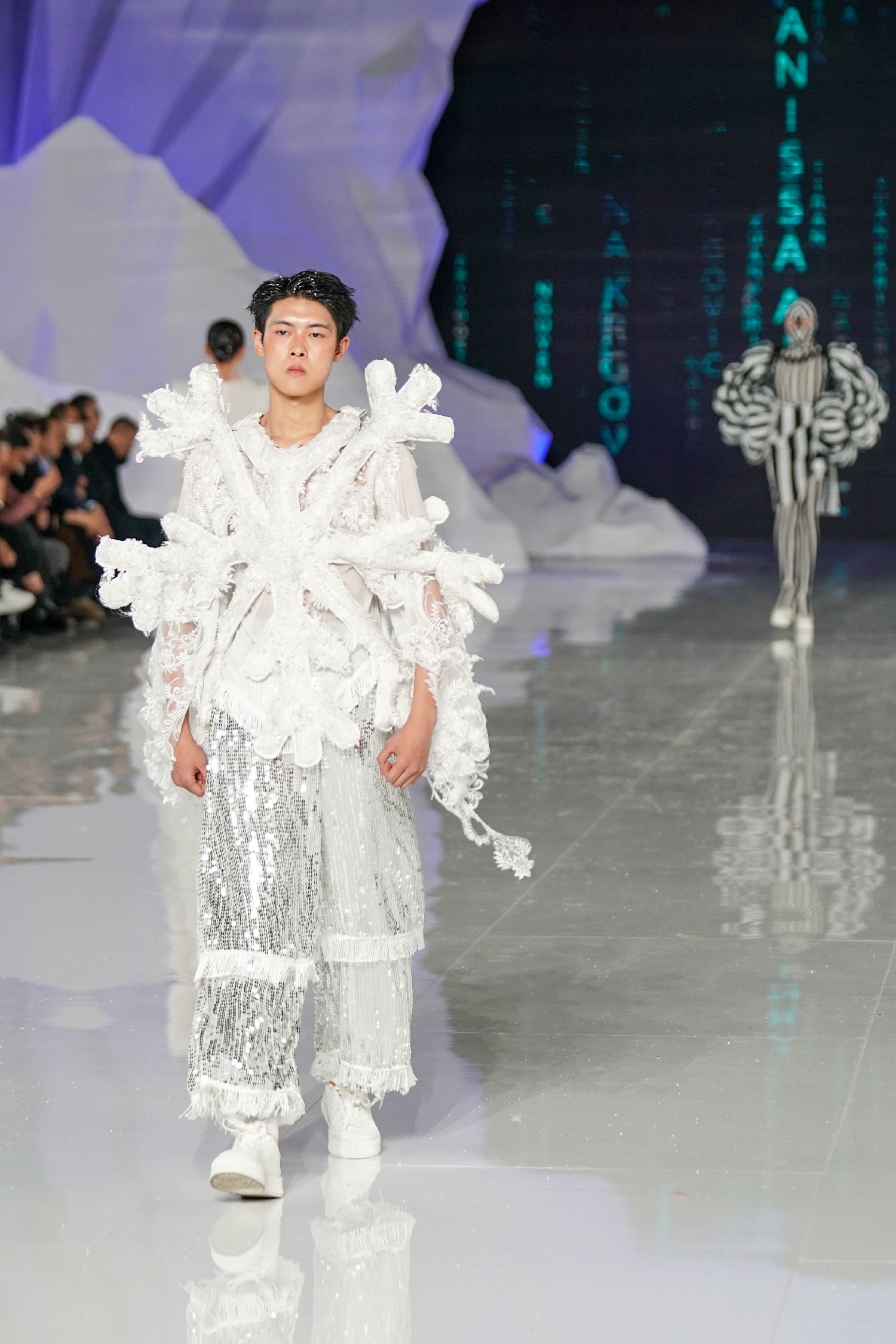 图为来自26个国家和地区的国际设计师为本届时装周设计的冰雪主题时装。(图片来源:中新社)