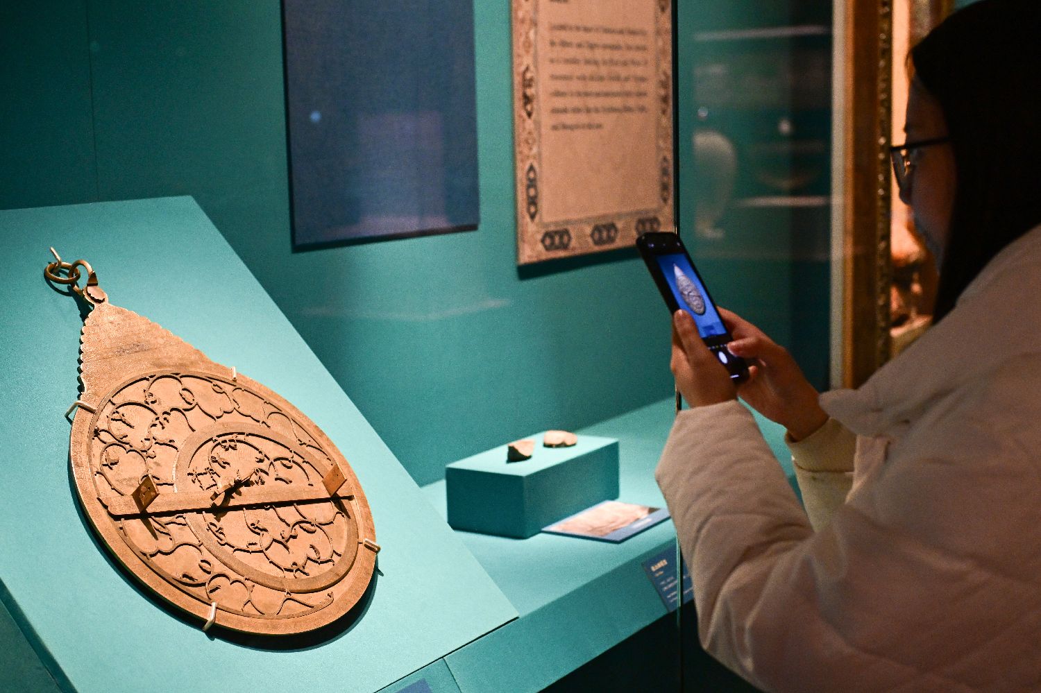 1月11日,“历史之遇——中国与西亚古代文明交流展”和“璀璨波斯——伊朗文物精华展”联合开幕式在北京故宫博物院午门展厅举行。据悉,“璀璨波斯——伊朗文物精华展”由故宫博物院,伊朗文化遗产、旅游和手工艺部,以及伊朗国家博物馆主办,于1月12日至4月11日在午门东雁翅楼展厅举办。展览分“包容之美”“东西相通”两个单元,荟萃了伊朗多家博物馆收藏的216件文物。从宫殿建筑到居室家具,从殿堂珍品到日常用器,从绘画艺术到文字书写,通过建筑、雕塑、陶瓷、玻璃、金属、书法、绘画等各类文物。图为1月10日,媒体记者参观拍摄展出的展品。(图片来源:中新社)