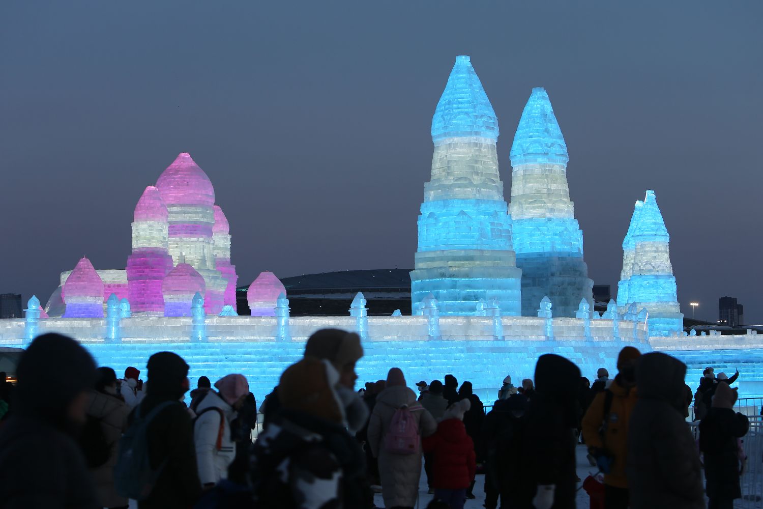 2月15日,民众游览哈尔滨冰雪大世界景区。(图片来源:中新社)