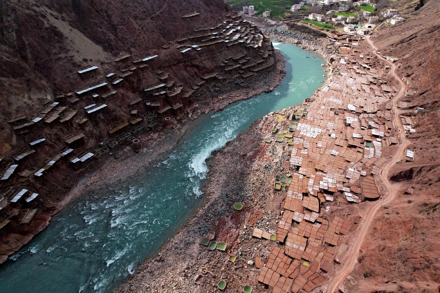 2月20日,航拍西藏昌都芒康千年古盐田。在西藏昌都芒康县纳西民族乡澜沧江两侧,盐田依山而建,错落有致,景色奇美。史料记载,当地晒盐历史距今已有1000多年。(无人机照片)(图片来源:中新社)