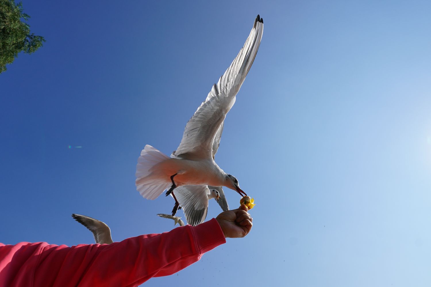 3月4日,云南昆明,红嘴鸥从游客手中取食。随着天气回暖,越冬的红嘴鸥将陆续飞回栖息地,众多市民和游客来到滇池边与红嘴鸥互动。(图片来源:中新社)