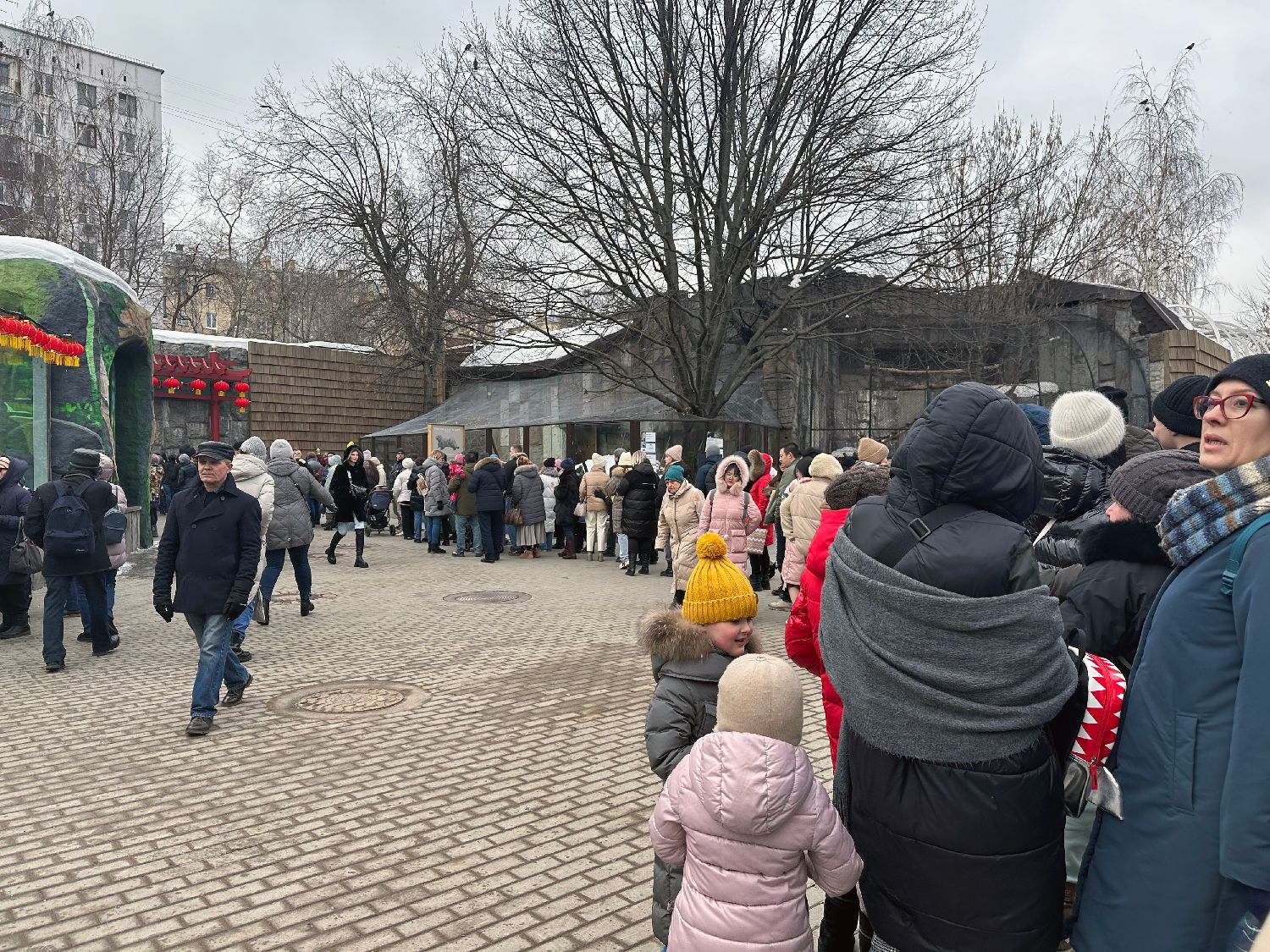 图为游客在大熊猫馆前排队等候入馆观看。(图片来源:中新社)