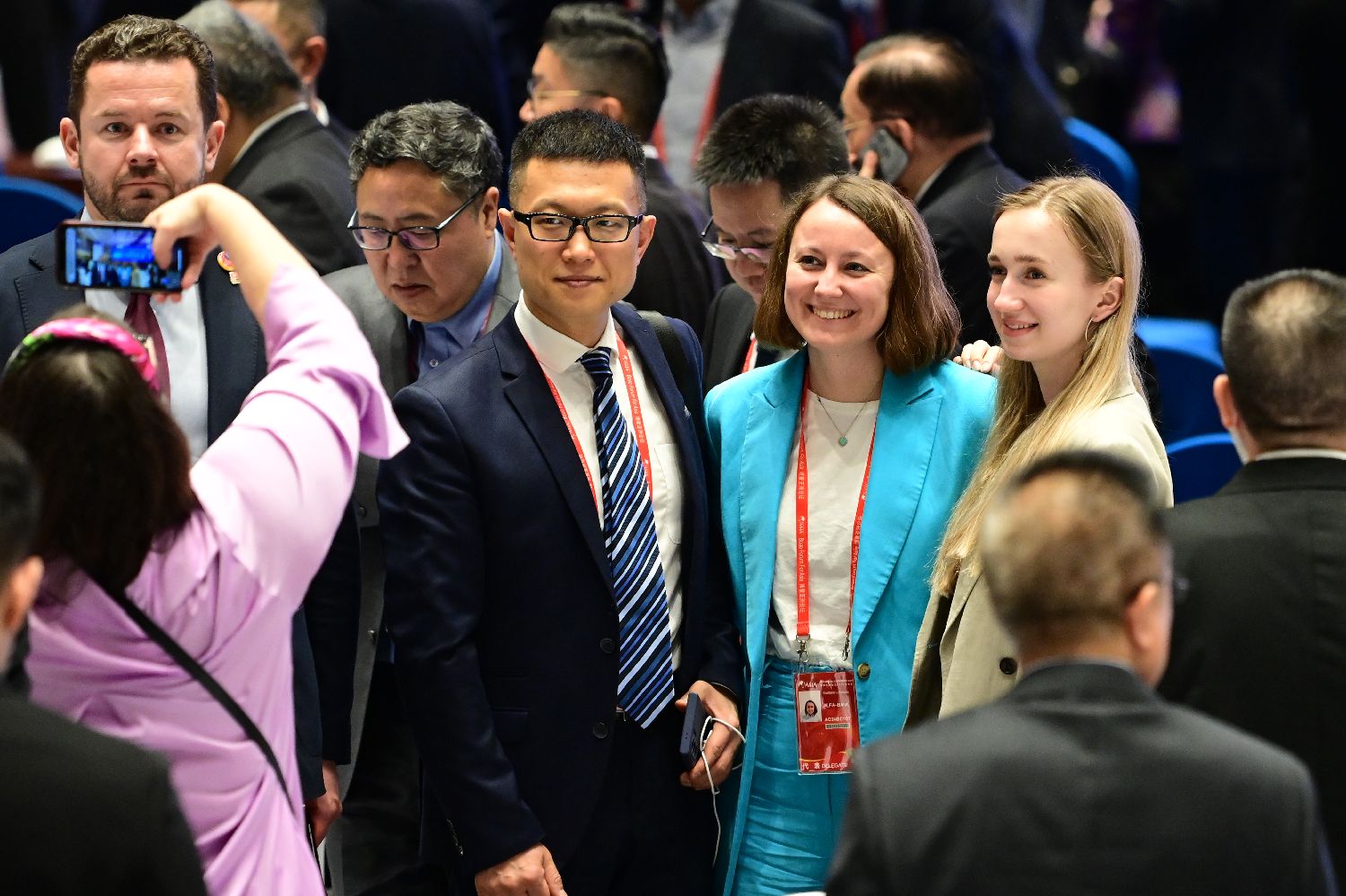 图为与会代表在开幕式后合影留念。(图片来源:中新社)