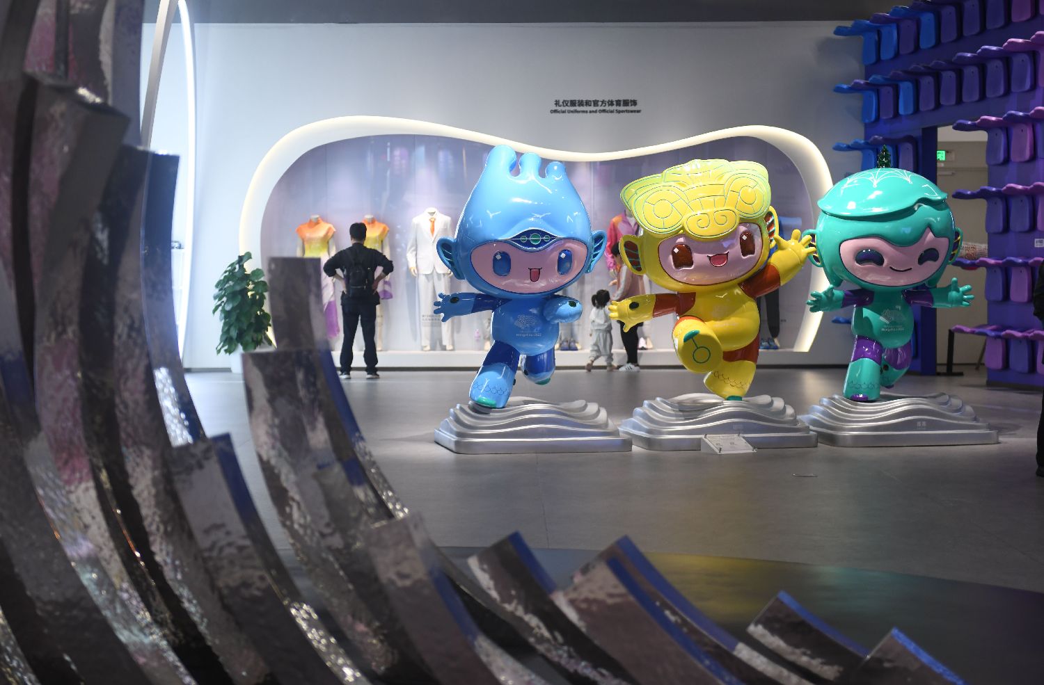 4月3日,参观者在杭州亚运会博物馆参观。当日,杭州亚运会博物馆正式对公众开放,该馆位于浙江杭州奥体中心体育场下方,包含亚运与杭州、亚运与亚洲、亚运与未来三大板块,全面还原了杭州申办、筹办、举办亚运的精彩历程,是重要的亚运遗产。(图片来源:中新社)